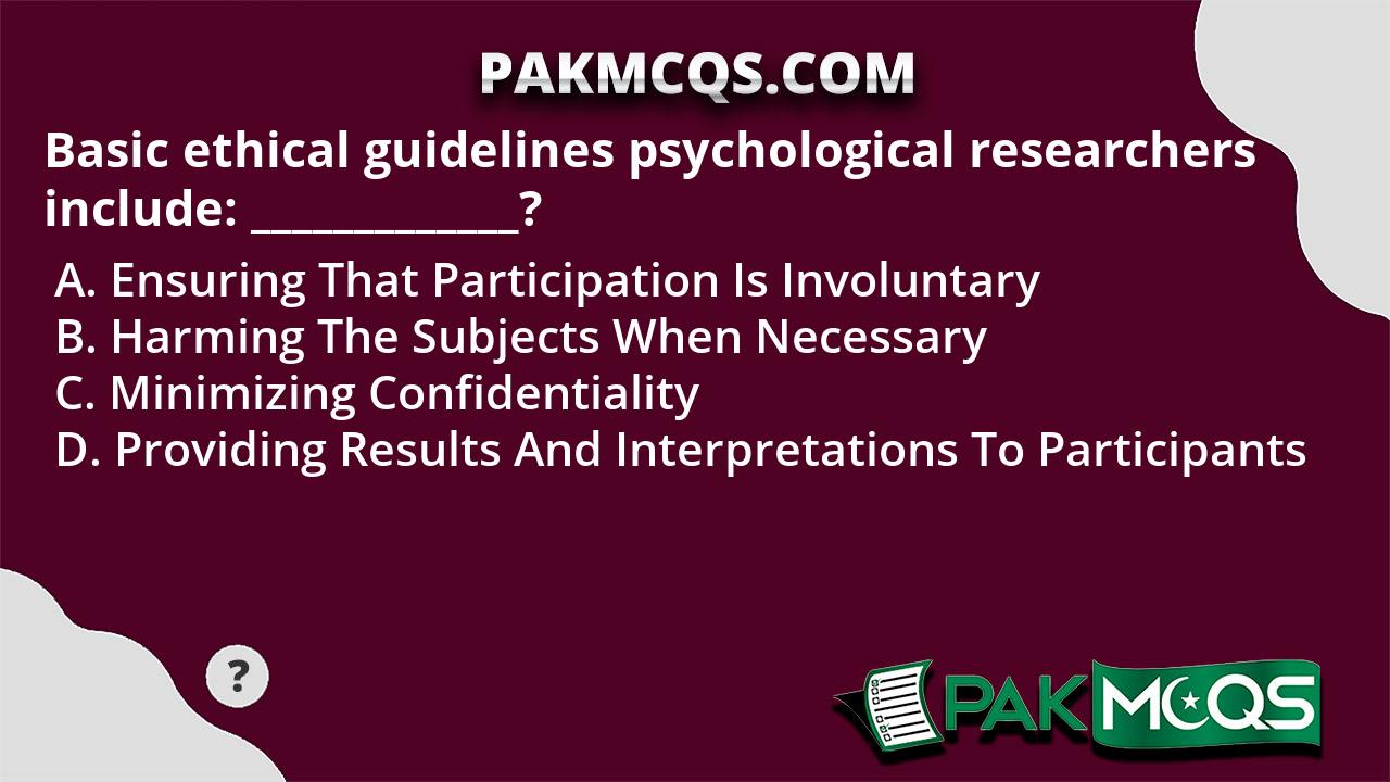 Basic ethical guidelines psychological researchers include ...